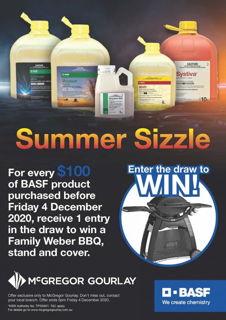 For every $100 of ANY BASF product purchased between Thursday 29th October and Friday 4th December 2020, receive 1 entry in the draw to win one of 13 Family Weber BBQ’s + Stand + Cover. This offer is exclusive only to McGregor Gourlay. Don’t miss out, contact your local branch today !!!